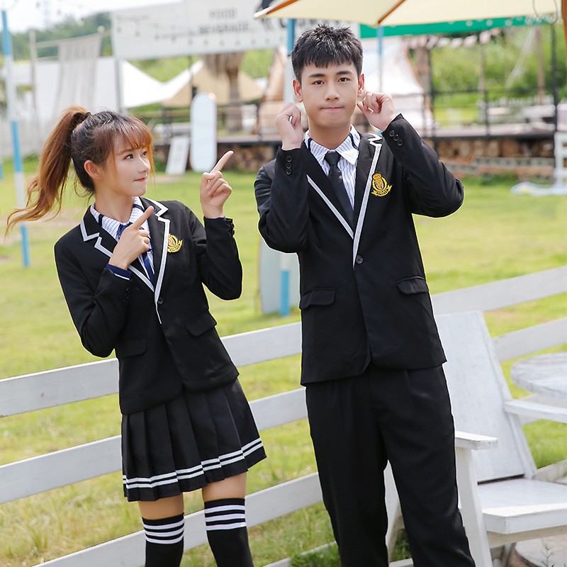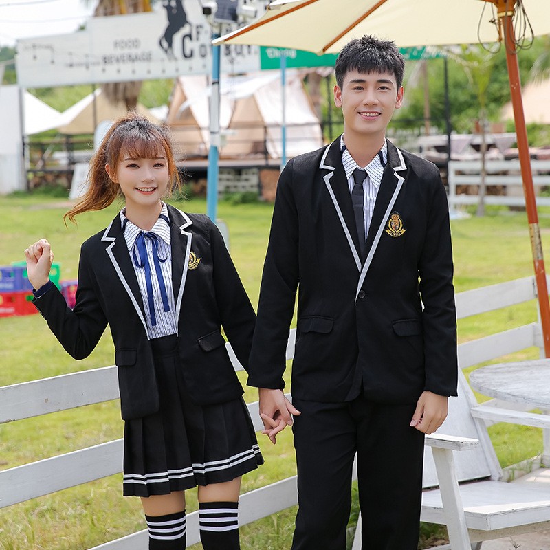 Esta sofisticada colección de uniformes reinventa el estilo británico clásico con un toque contemporáneo. La llamativa tubería blanca en el blazer negro crea una silueta definida y nítida, mientras que la sutil camisa a rayas agrega profundidad a la estética general, equilibrando perfectamente los requisitos formales con energía juvenil.