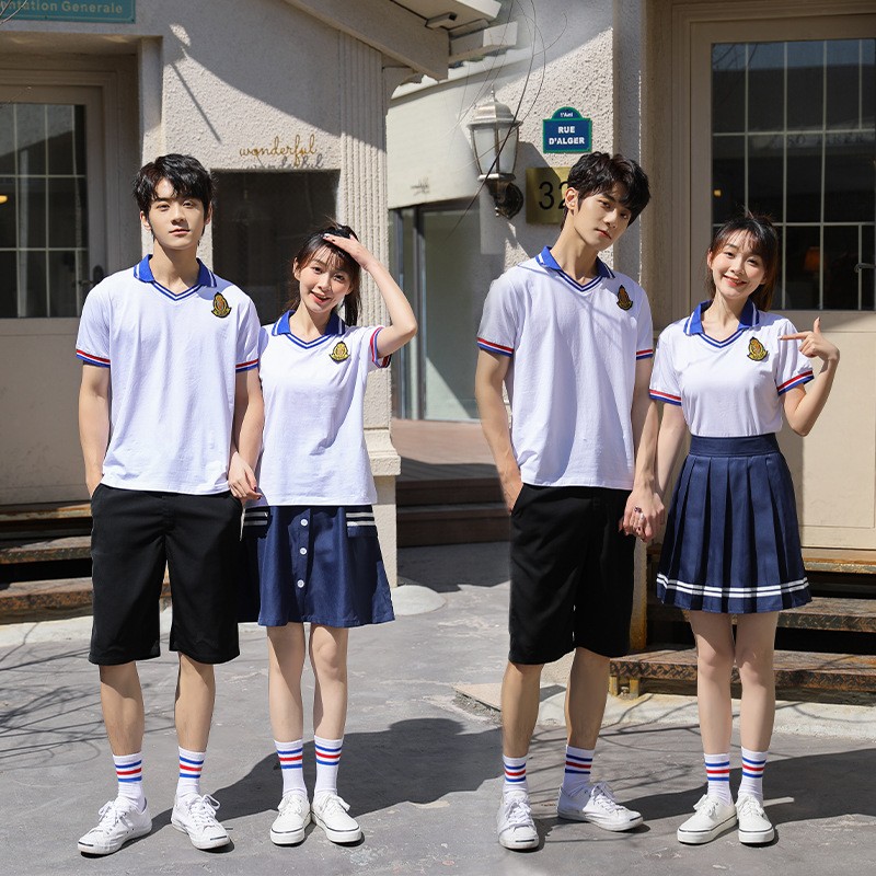 Coordinado Género-Estilo específico: El conjunto ofrece opciones perfectamente adaptadas para todos los estudiantes: pantalones cortos negros limpios para niños y faldas navy complementarias para niñas, creando una imagen cohesiva del campus.
