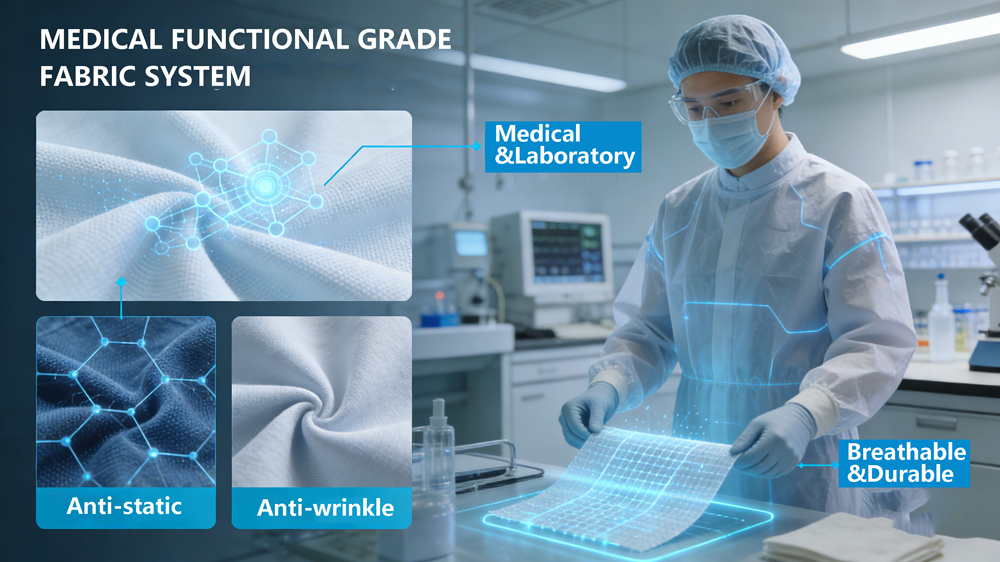 Antiestático: las fibras conductoras se tejen en la tela para disipar continua y efectivamente la electricidad estática del cuerpo, evitando riesgos cerca de áreas estériles, almacenamiento de productos químicos o instrumentos sensibles, salvaguardando al personal y al equipo.